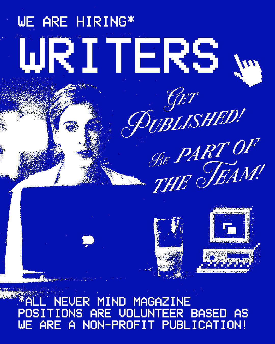 I run the Never Mind Magazine socials, designing multiple posts a week. Posts range from issue announcements, call for artists to inspiration posts. More coming soon.