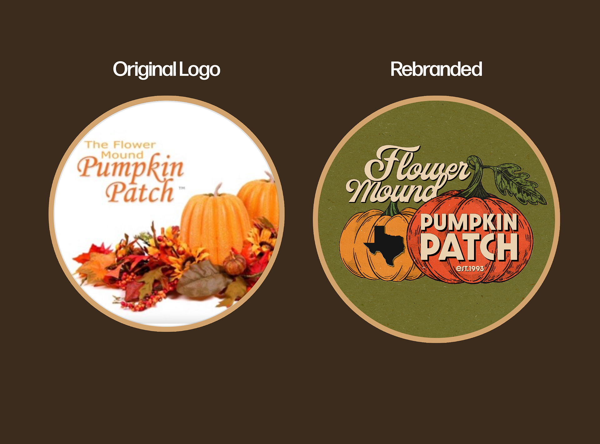 I grew up in north Texas going to the local pumpkin patch every fall season. When updating the logo and the overall branding it was important to establish a nostalgic tone as the pumpkin patch is a tradition for many families.