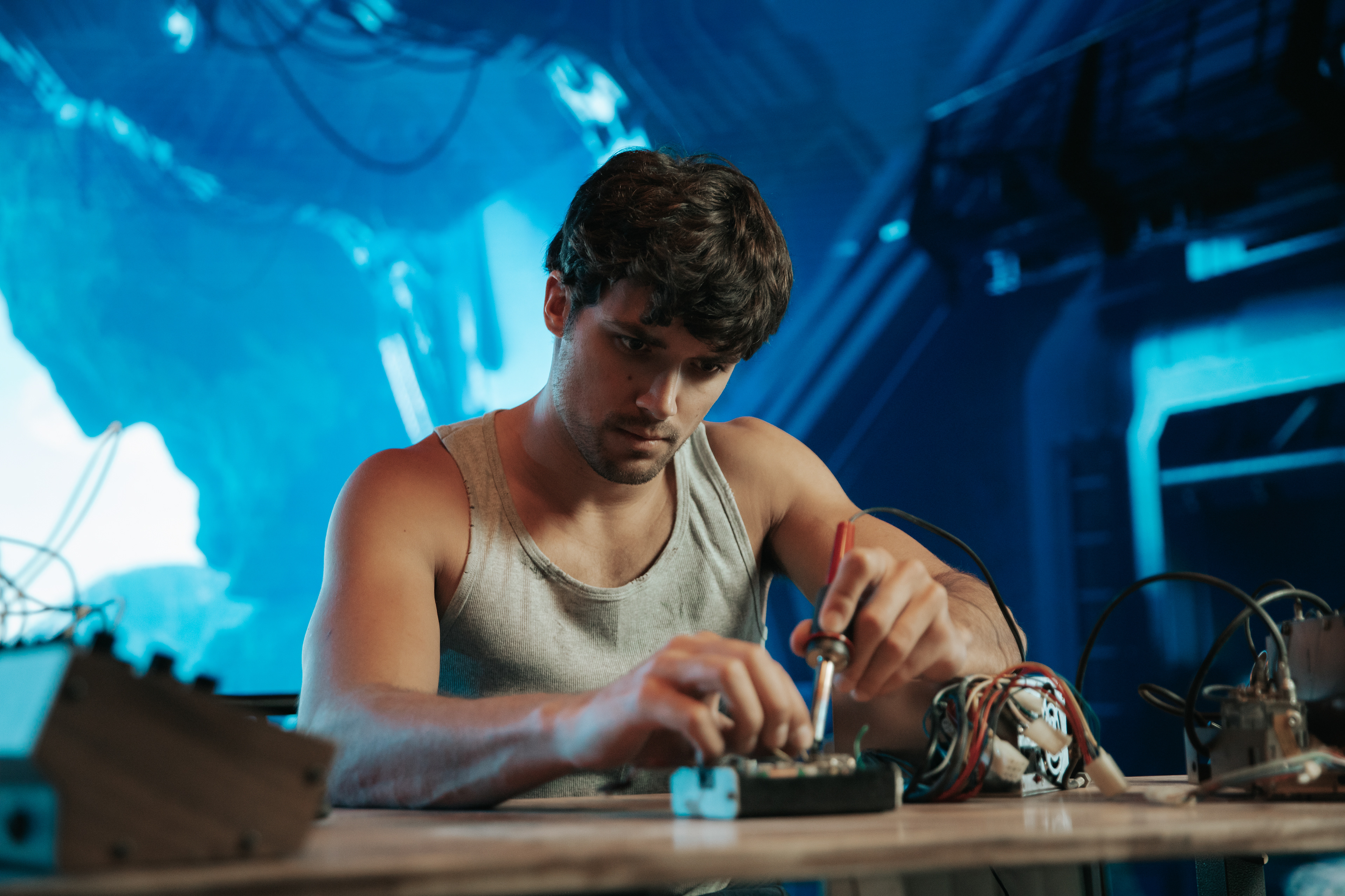Directed by Noah French, Produced by Josh Watts. I'm the credited Graphic Designer and Production Designer for the film, I also weathered costume pieces (helmet, jumpsuit, tank top, gloves).